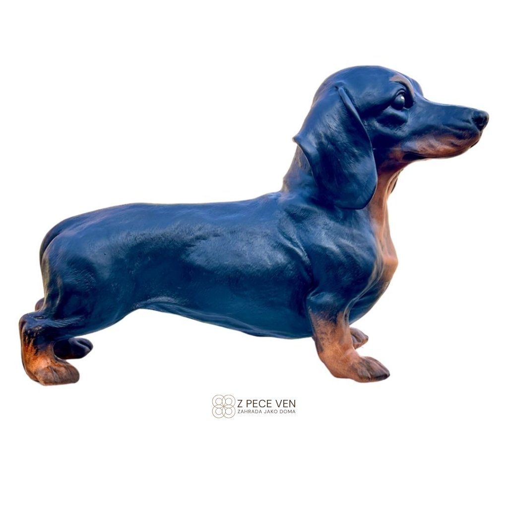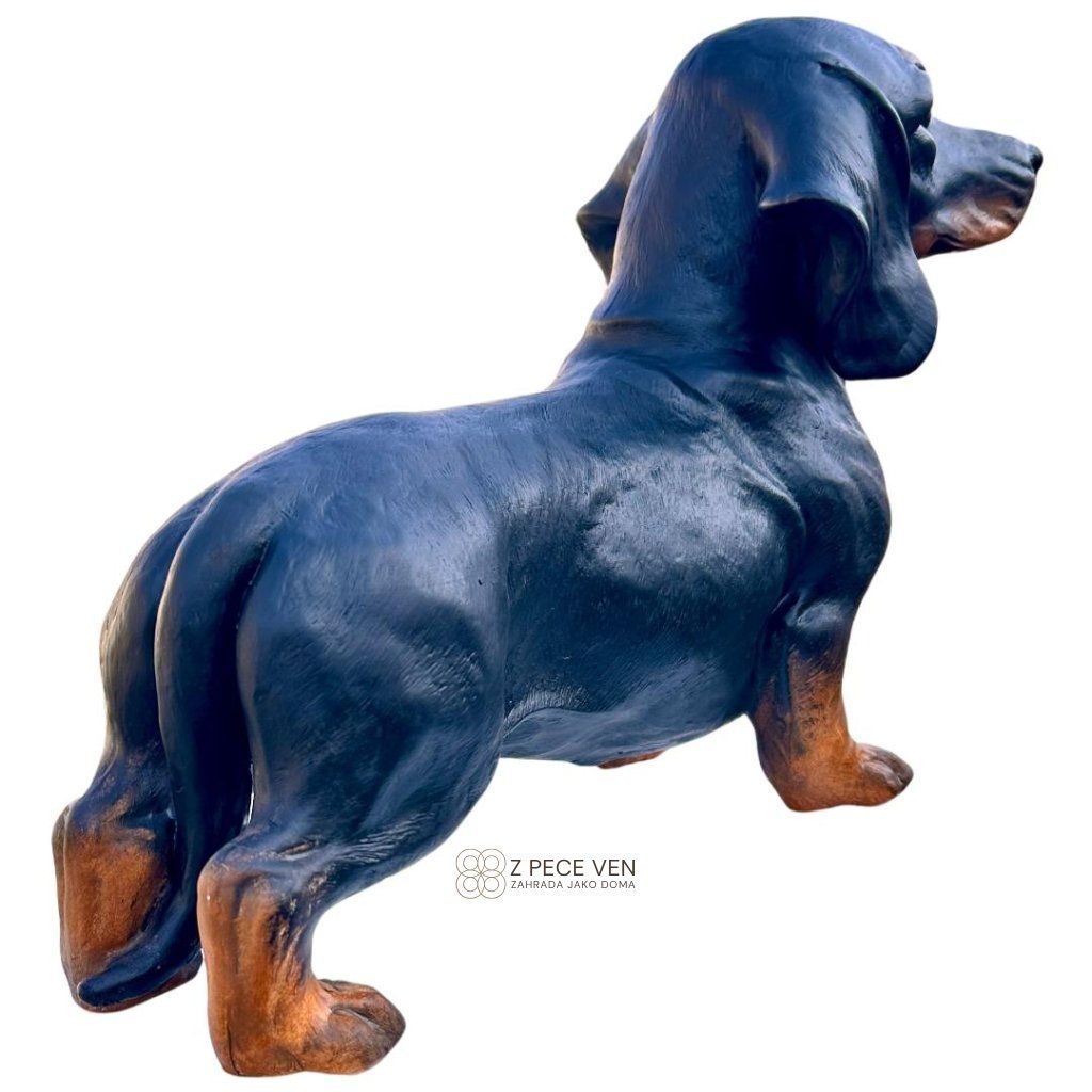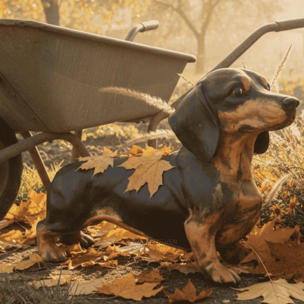 Hledáte dekoraci, která do vašeho prostoru vnese život a charakter? Tento keramický jezevčík zaujme na první pohled nejen svou velikostí, ale i neuvěřitelně realistickým zpracováním. Detailně modelované tělo, lesklé oči a typické černo-tříslové zbarvení z něj dělají autentický doplněk, který se stane srdcem každé české zahrady či chalupy. S délkou 49 cm působí výrazně a přirozeně zároveň.