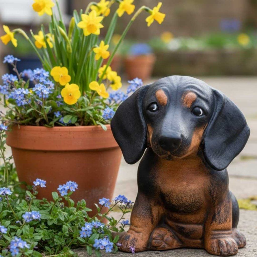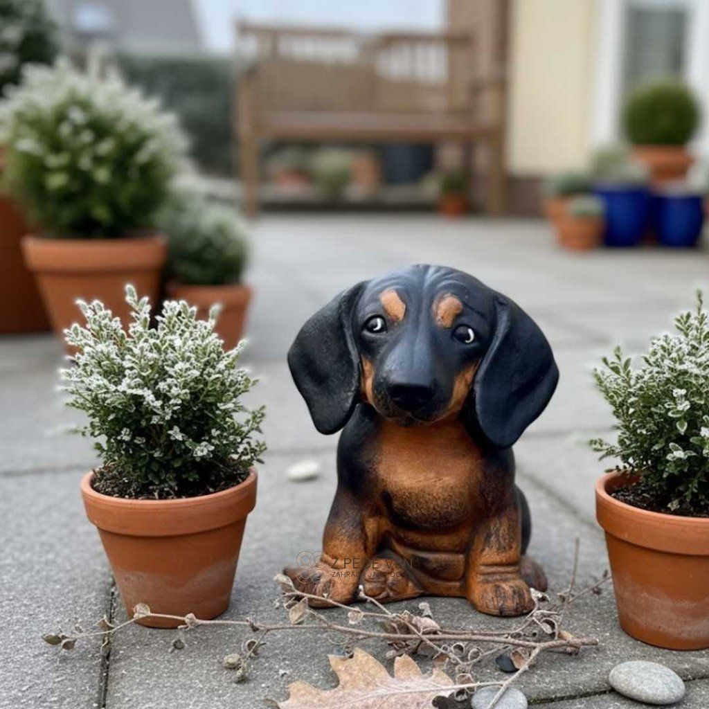 Keramický jezevčík Maxík jako věrný strážce vaší zahrady