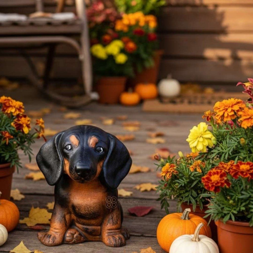 Keramický jezevčík je dekorace, která dokáže přirozeně oživit zahradu i interiér a zaujmout na první pohled.