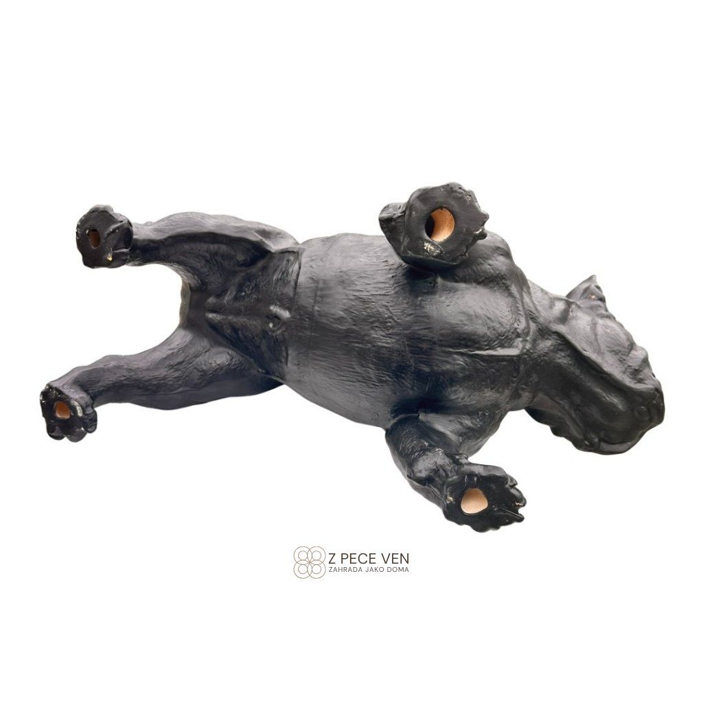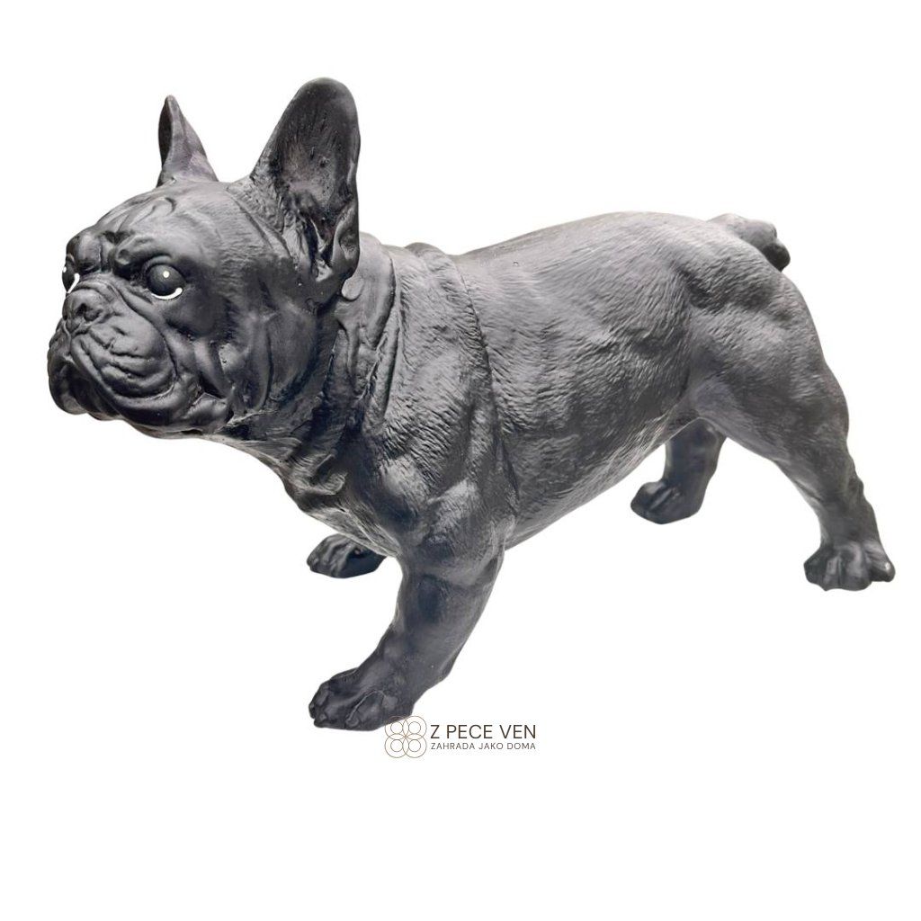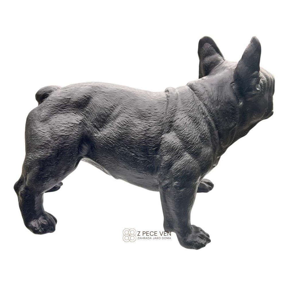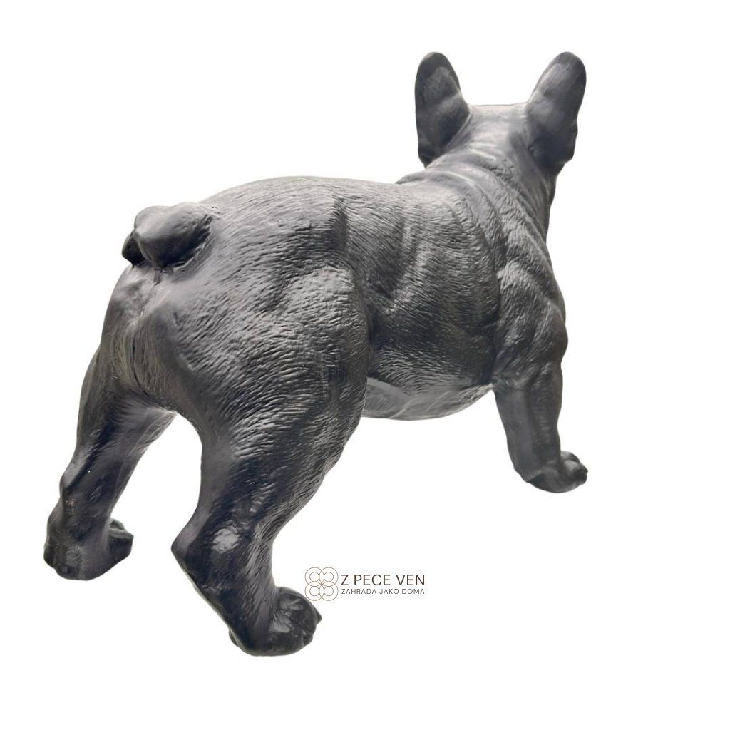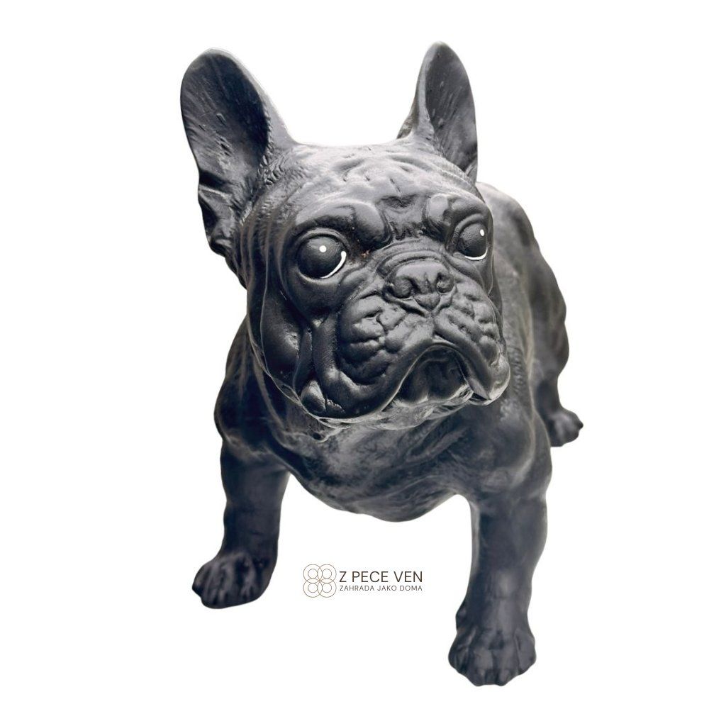 Keramický černý buldoček ve větším formátu funguje jako samostatný kus, který si drží pozornost bez další dekorace.