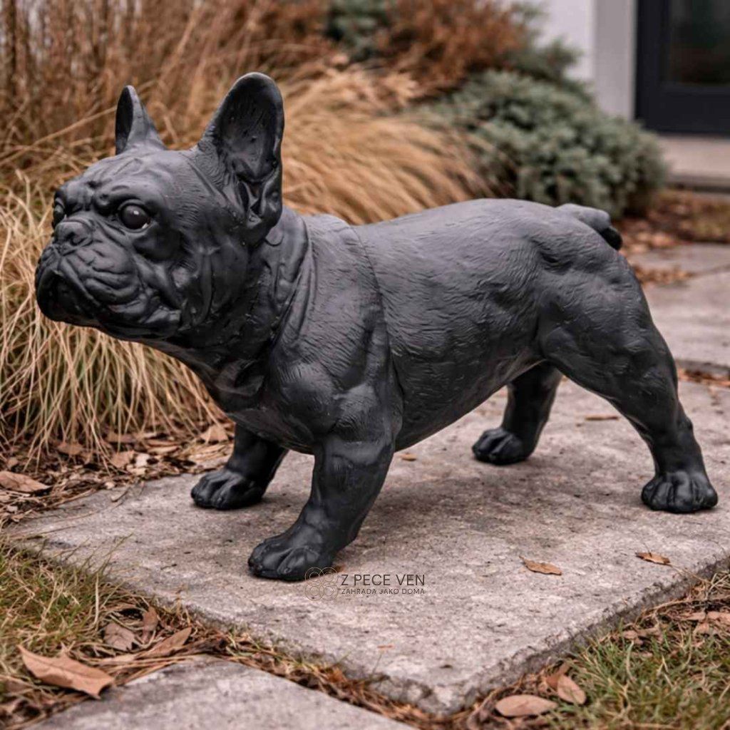 Charismatický buldoček v přírodním hnědém odstínu s jemným stínováním je navržen tak, aby do vašeho exteriéru vnesl eleganci i špetku psí povahy. Jeho pevný postoj a poctivá hmotnost zajišťují stabilitu, ať už se rozhodne hlídat váš trávník, nebo odpočívat na kamenné dlažbě. Detailní modelace vrásek a typického výrazu mu dodává živý charakter, který okamžitě upoutá pozornost každé návštěvy.