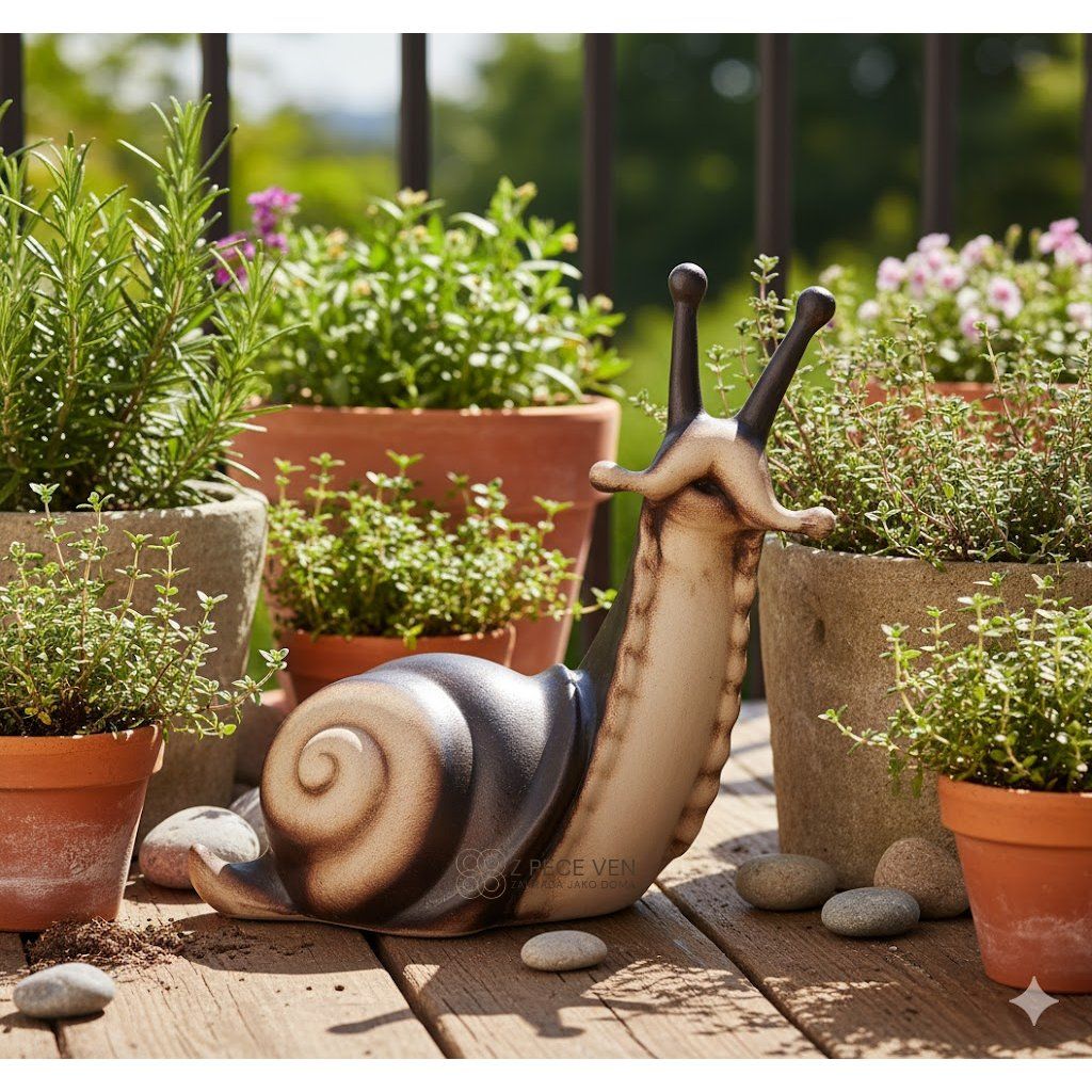 Keramický šnek Helix má díky své výšce výraznou siluetu a v prostoru se neztratí.