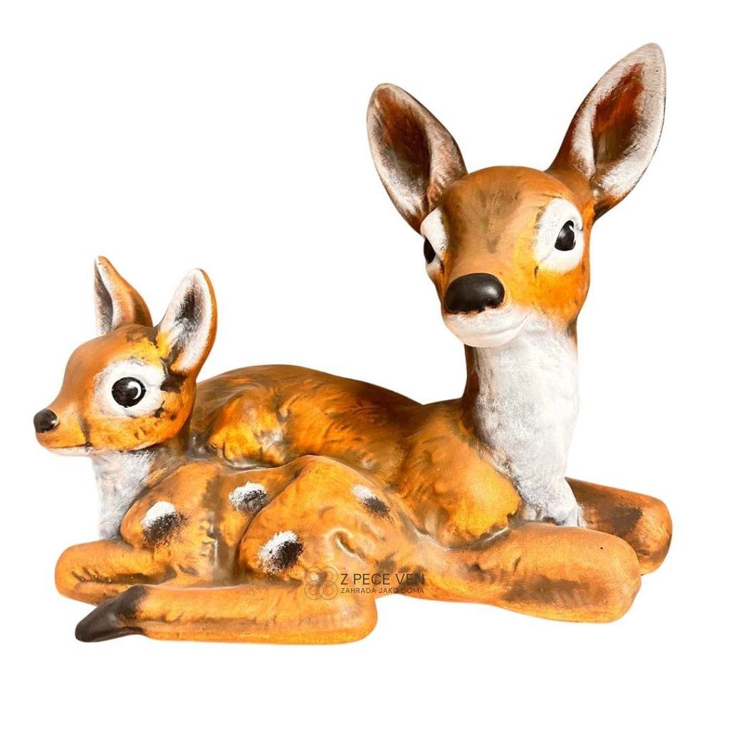 Keramická dekorace Srnka s kolouškem - světle hnědá