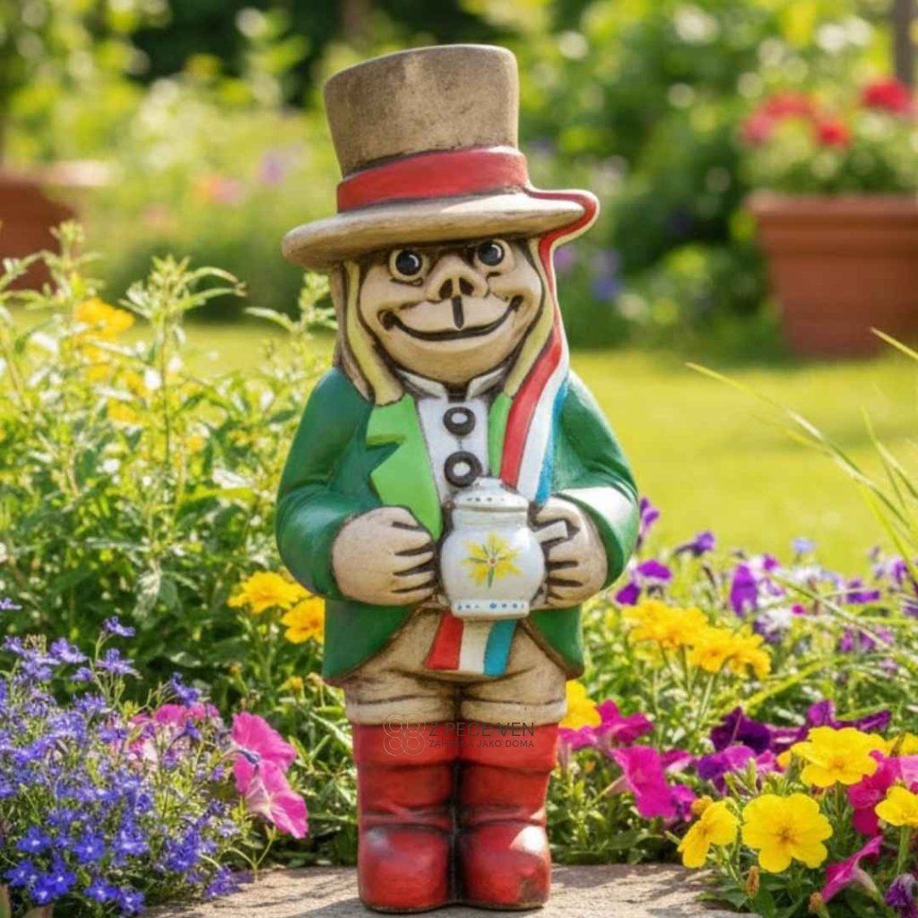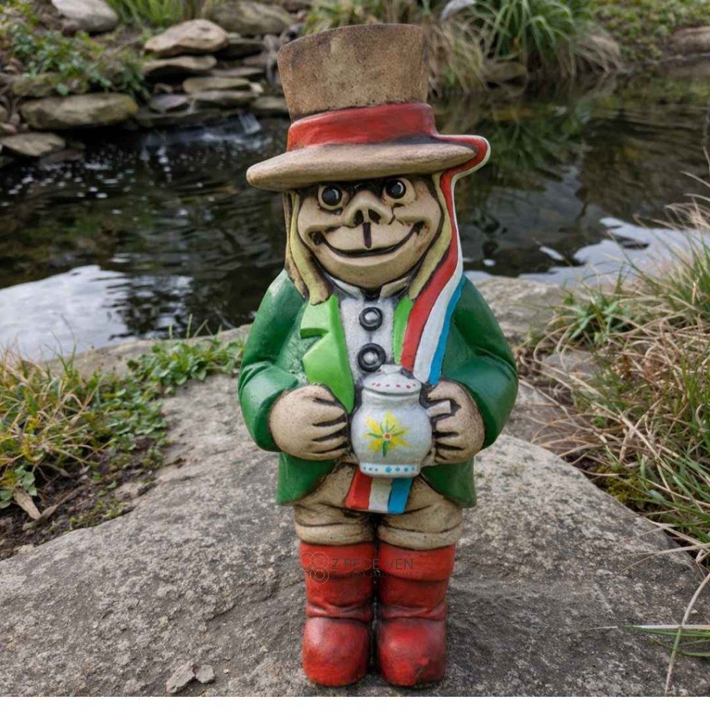 Ručně malovaná dekorace nejlépe vynikne v bezprostřední blízkosti vody, kde vytvoří výrazný, ale přirozený prvek. Díky své úctyhodné výšce 44 cm se v zahradě neztratí a jeho sytě zelený kabát spolu s detailně propracovaným obličejem okamžitě upoutá pozornost.