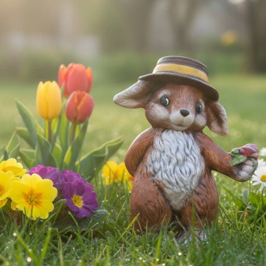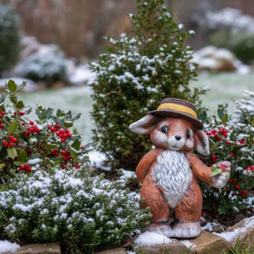 Zajíc Archibald je navržen jako dekorativní prvek s duší, který skvěle doplňuje moderní i klasické zahrady. Jeho stabilní základna umožňuje snadné umístění na nejrůznější povrchy. Přírodní zemité tóny patiny v kombinaci s výrazným kloboukem zajišťují, že soška působí autenticky a harmonicky ladí s kvetoucími rostlinami i okrasnými dřevinami.