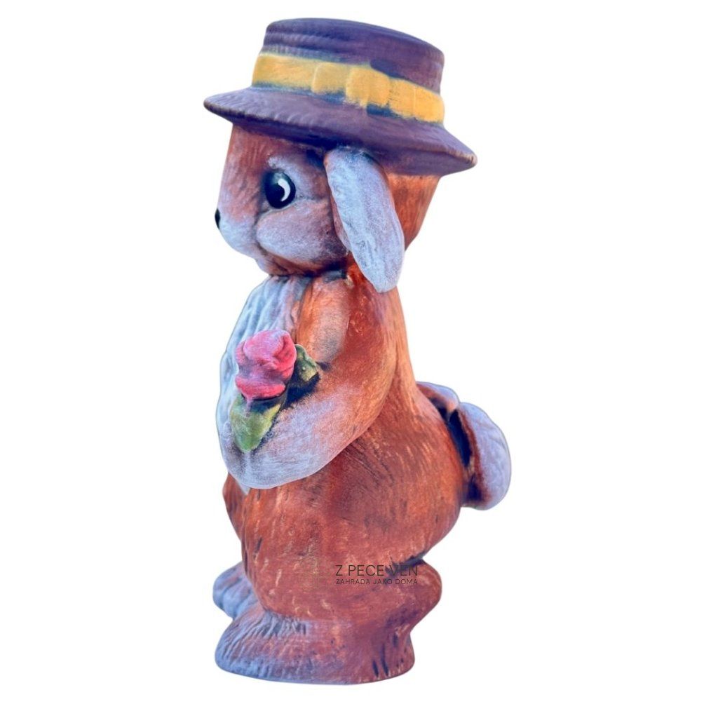Keramický zajíc Archibald je dekorace na zahradu, která vynikne jako výrazný prvek u vstupu, na terase i v záhonu.