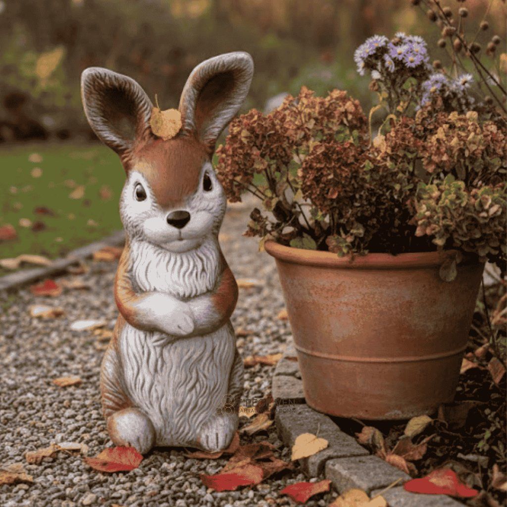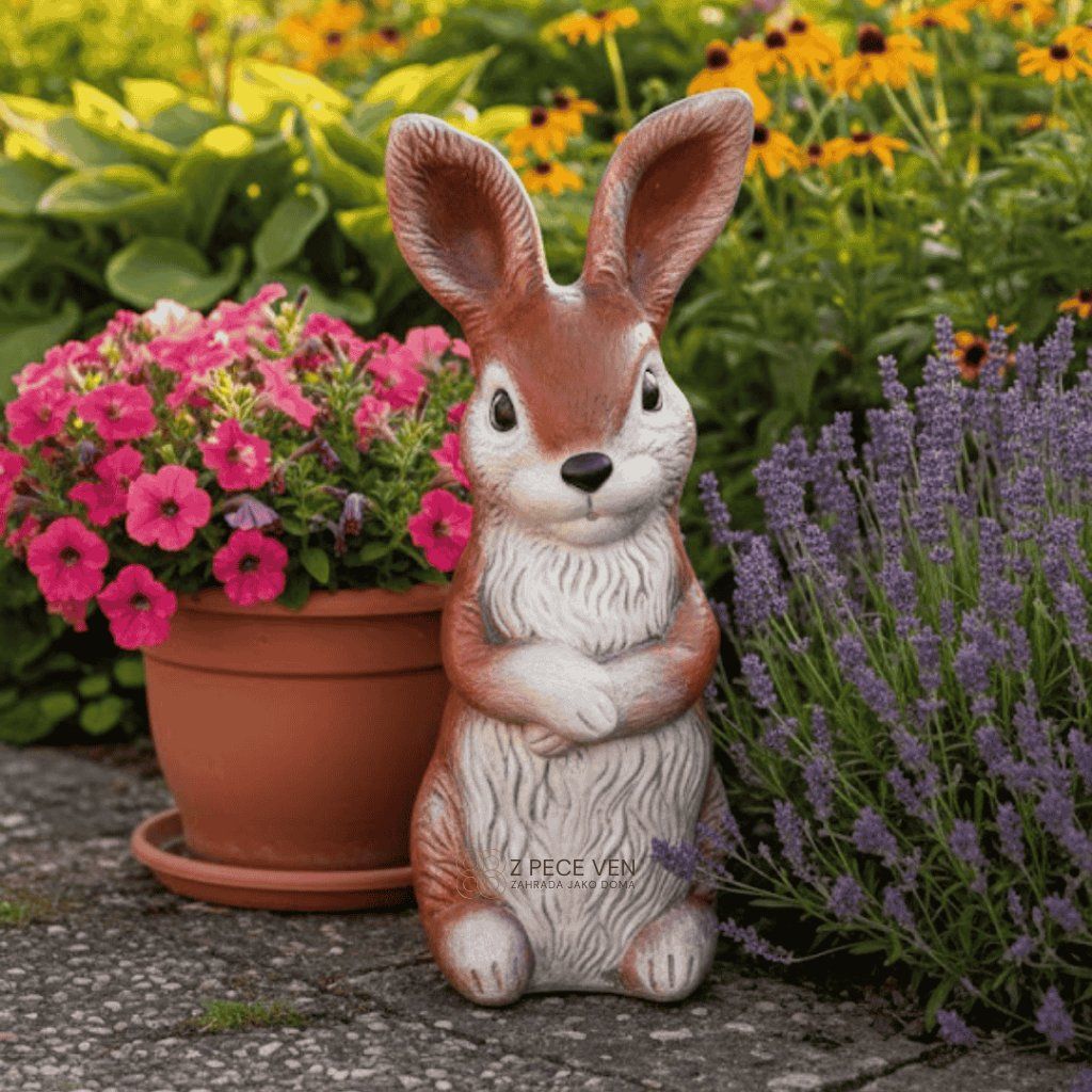 Zajíc v hřejivých přírodních odstínech je ideální volbou pro ty, kteří hledají vkusnou dekoraci, jež přirozeně splyne s prostředím. Skvěle vynikne v blízkosti okrasných dřevin, na travnatých plochách nebo jako stylový strážce u vchodových dveří. Ruční dekorování zajišťuje, že každý kus má svůj jedinečný výraz a hloubku barev, která nepodléhá módním trendům.