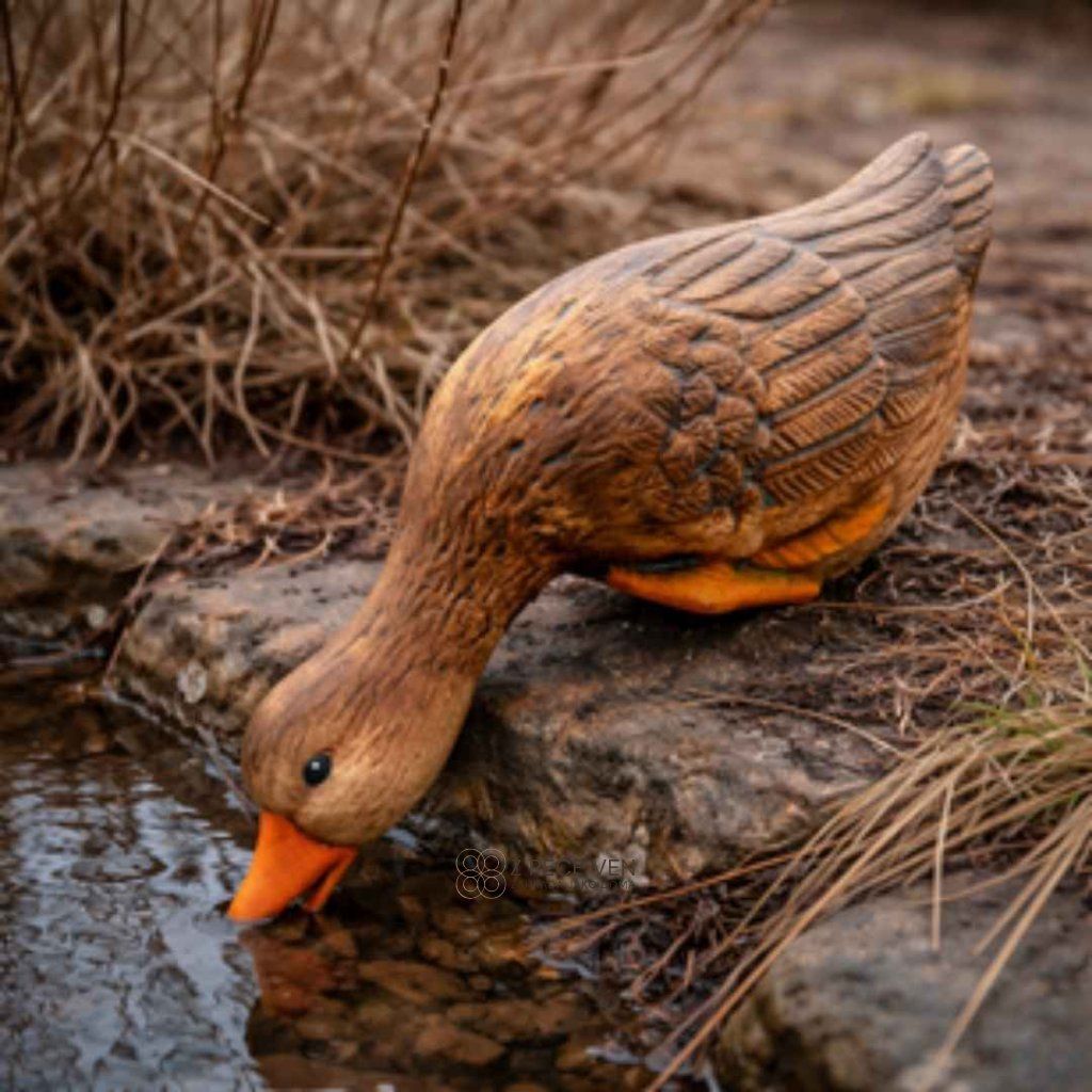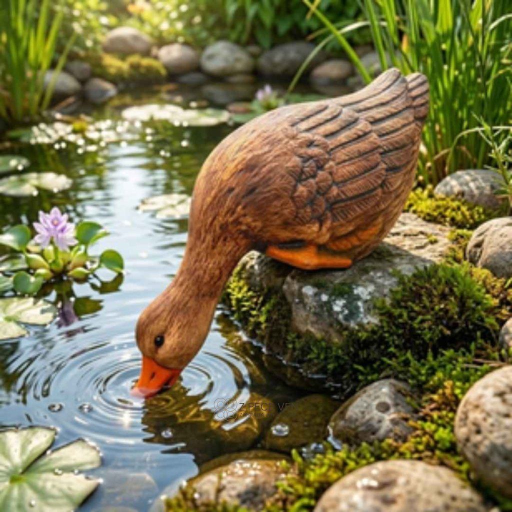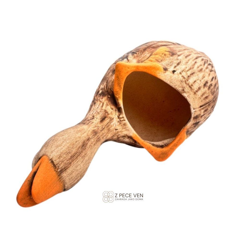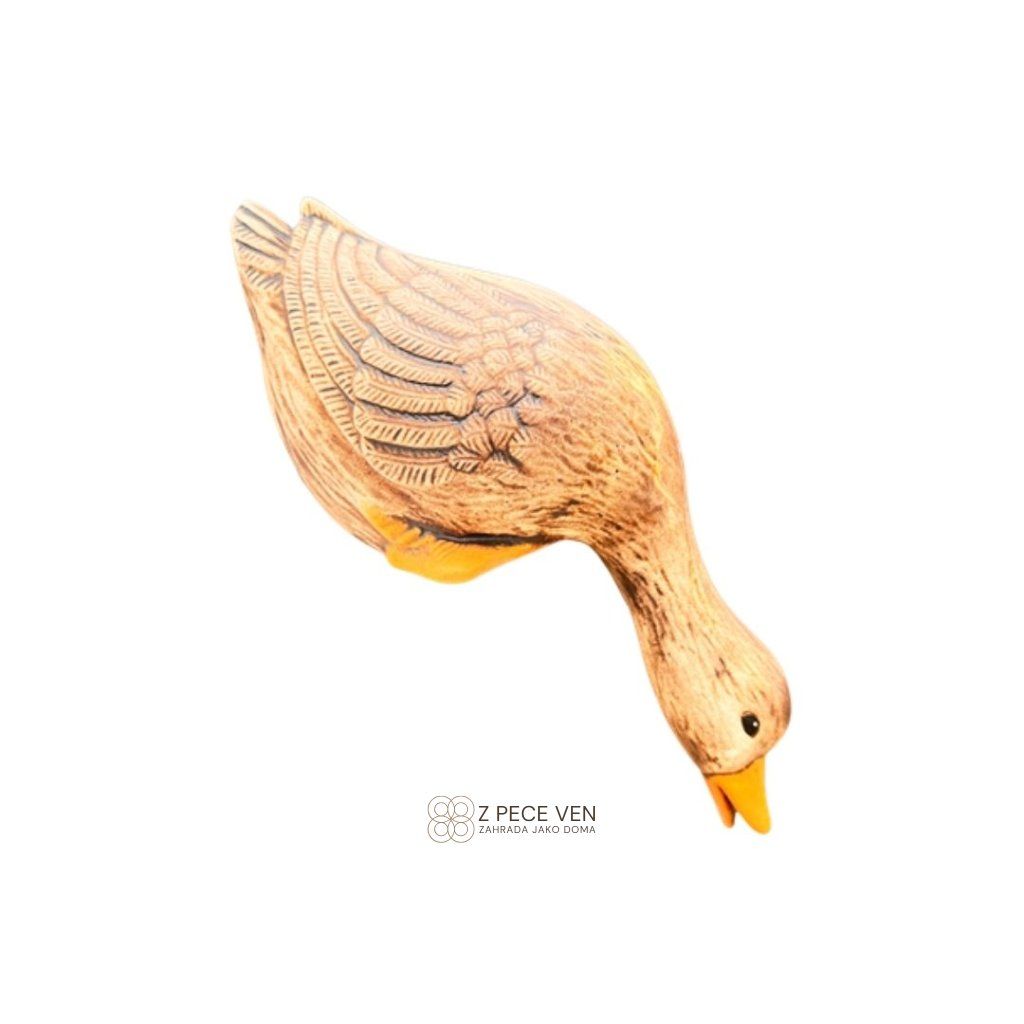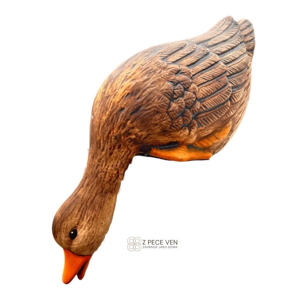 Keramická husa Berta doplní dekorace na zahradu o klidný a elegantní prvek, který evokuje venkovskou atmosféru. Skloněný krk vytváří dojem, že se právě napájí, což působí velmi živě a přirozeně. Tato jemná dekorace dokáže dodat prostoru klid a přirozený charakter všude tam, kde může působit jako součást přírody.