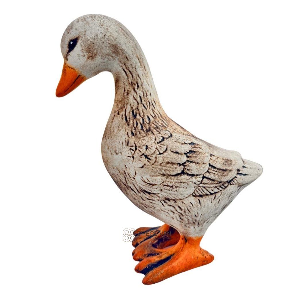 Přidejte do svého venkovního prostoru nebo interiéru osobitý prvek s keramickou husou Poutnicí. Tato figurka je pečlivě vyrobena z kvalitní mrazuodolné keramiky s vysokým výpalem, což zajišťuje její odolnost vůči běžným povětrnostním vlivům, jako je déšť, sluneční záření i chladnější dny. Ruční malba každému kusu dodává osobitý charakter a hloubku, čímž vytváří přívětivou atmosféru venkova.