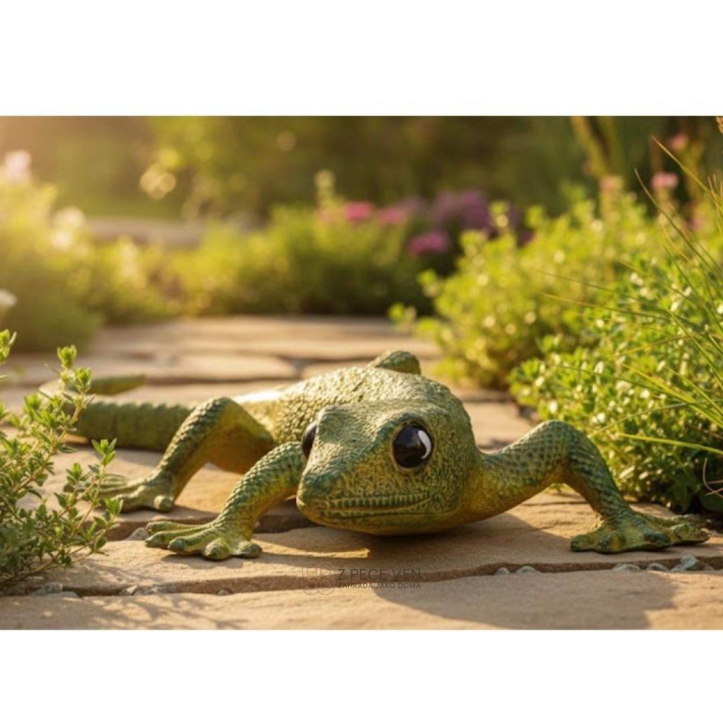 Ještěrku můžete umístit mezi květiny v záhonu, na trávník, skalku nebo do květinového truhlíku na balkoně. Všude působí jako vkusný přírodní detail.