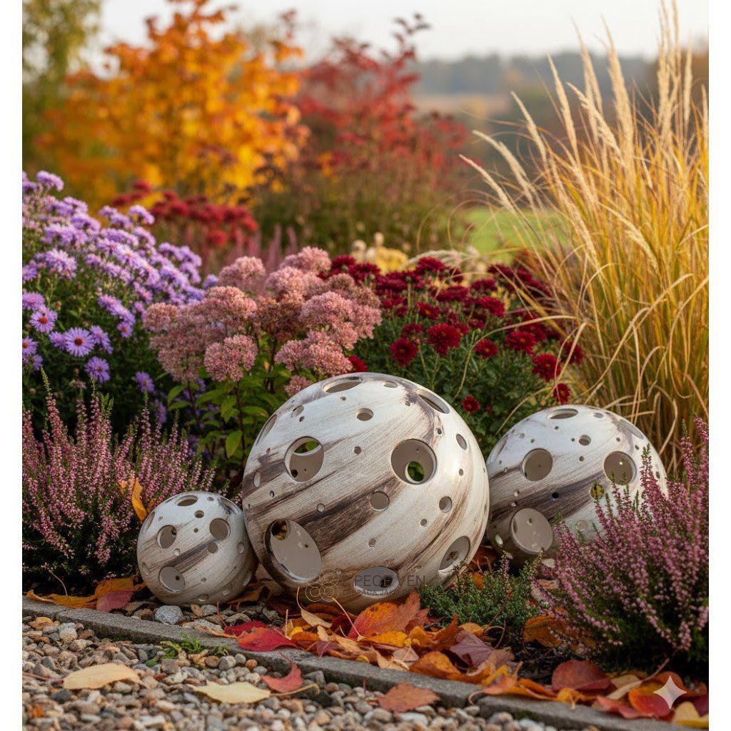 Keramická koule je dekorace na zahradu i terasu, která vynikne jako svícen a vytvoří působivou hru světla.