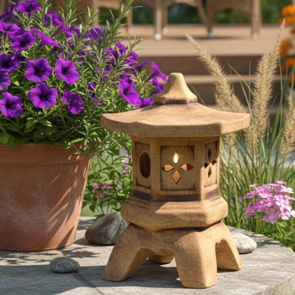Asijská estetika této lucerny vyniká svou elegancí a čistými liniemi, které sluší moderním i tradičním zahradám. Keramická lampa v asijském stylu není jen statickou dekorací, ale funkčním svícnem, který skrze své otvory propouští jemné paprsky světla. Ruční malba v zemitých odstínech podtrhuje její umělecký charakter a zajišťuje, že každý kus je autentickým originálem z české dílny.