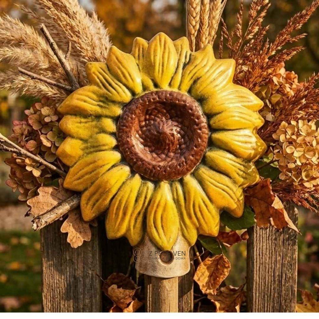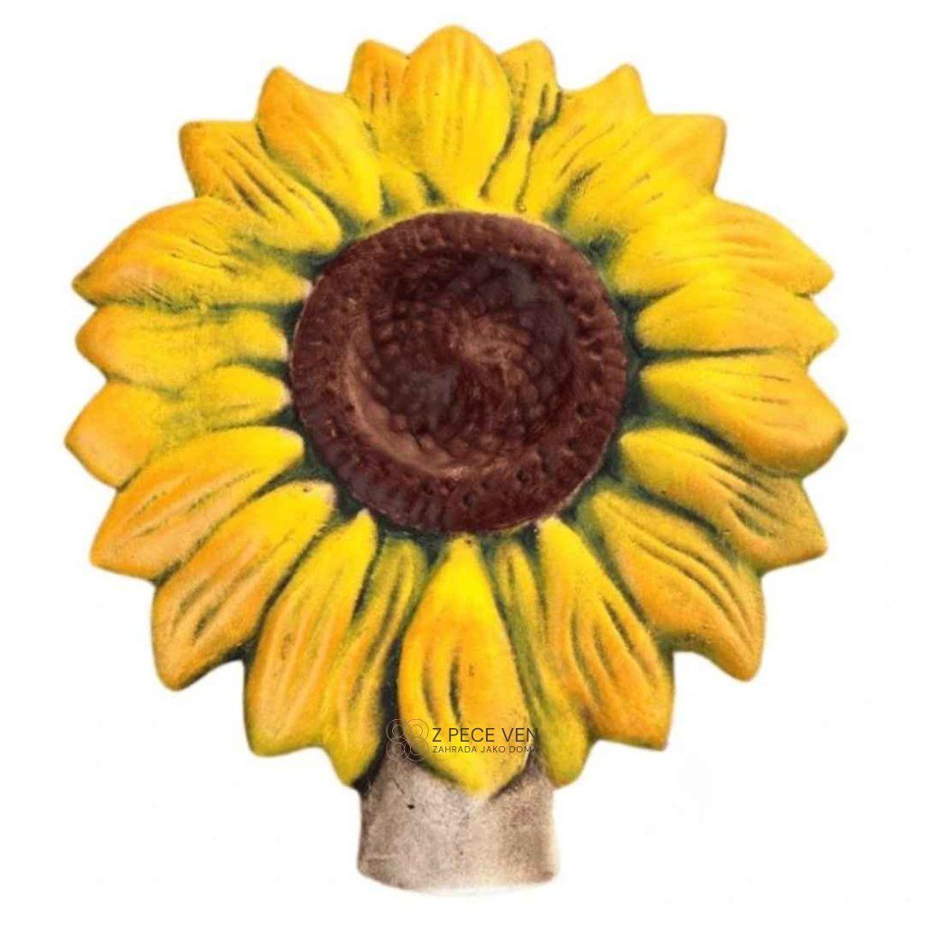 Keramická plotovka slunečnice je dekorace na zahradu, která vynikne na plotě, zábradlí i v záhonu.