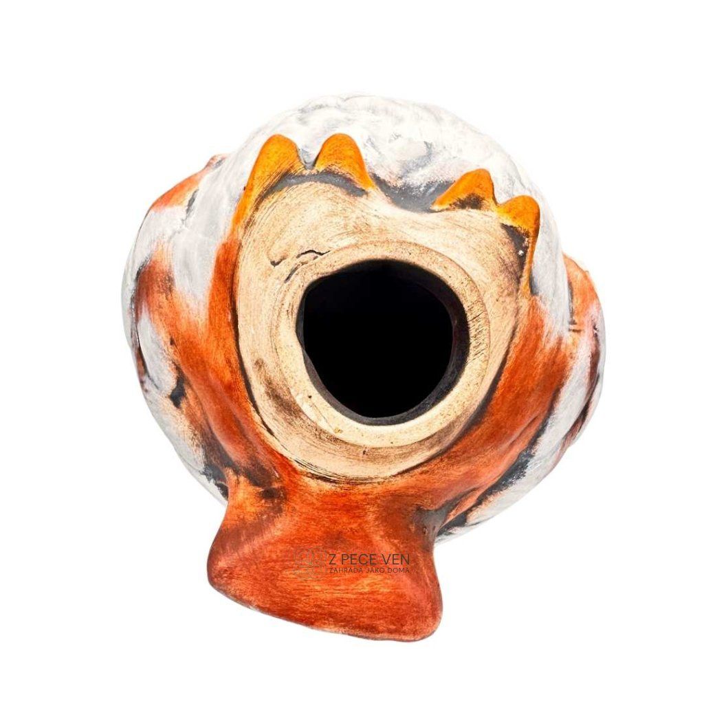 Naše keramika je vypalována při teplotách nad 1000 °C, což materiálu propůjčuje vynikající odolnost, barevnou stálost a nenasákavost. Dekorace je navržena pro celoroční pobyt v exteriéru – nevadí jí přímé slunce, UV záření ani vytrvalý déšť. Povrchová patina je pevnou součástí střepu, takže se neolupuje ani nebledne.