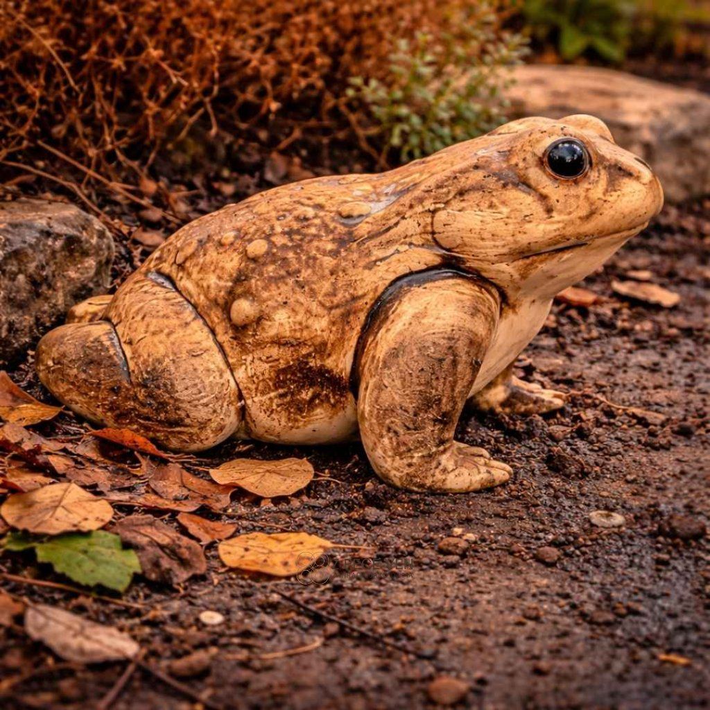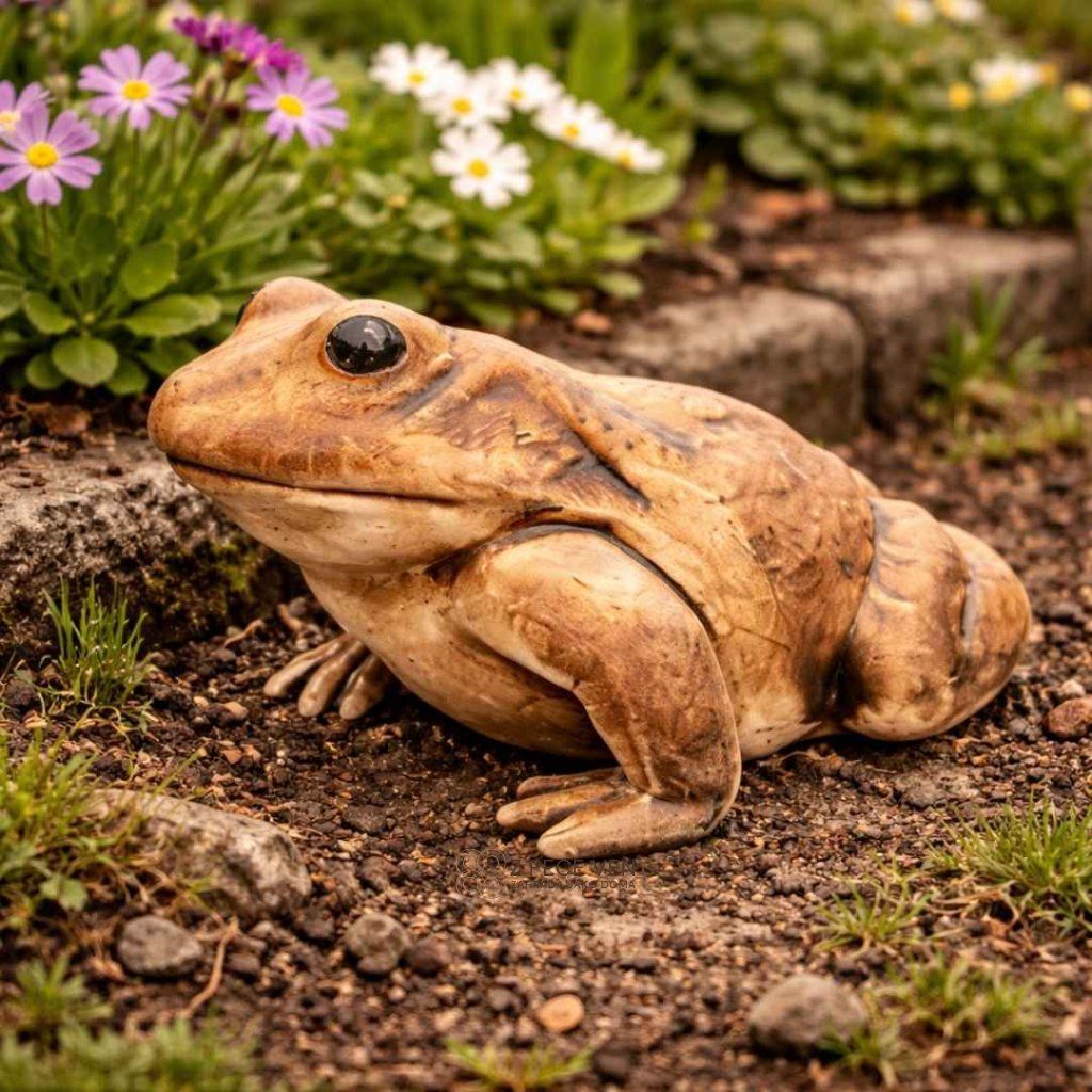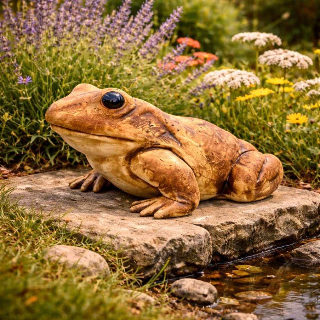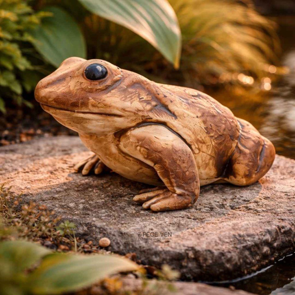 Žába Gamabunta působí stabilně a přirozeně, takže se stane nepřehlédnutelným prvkem v zahradě i u jezírka.