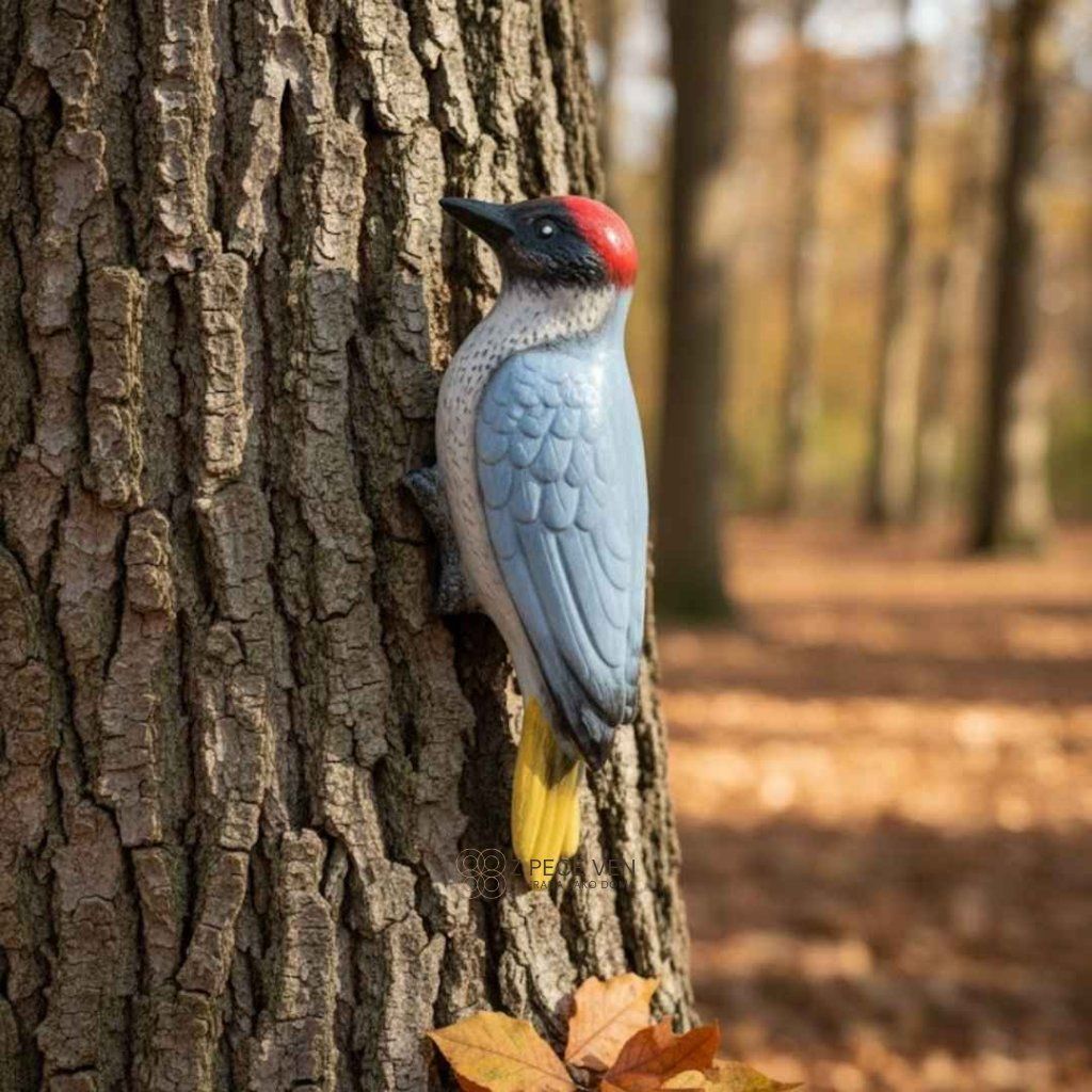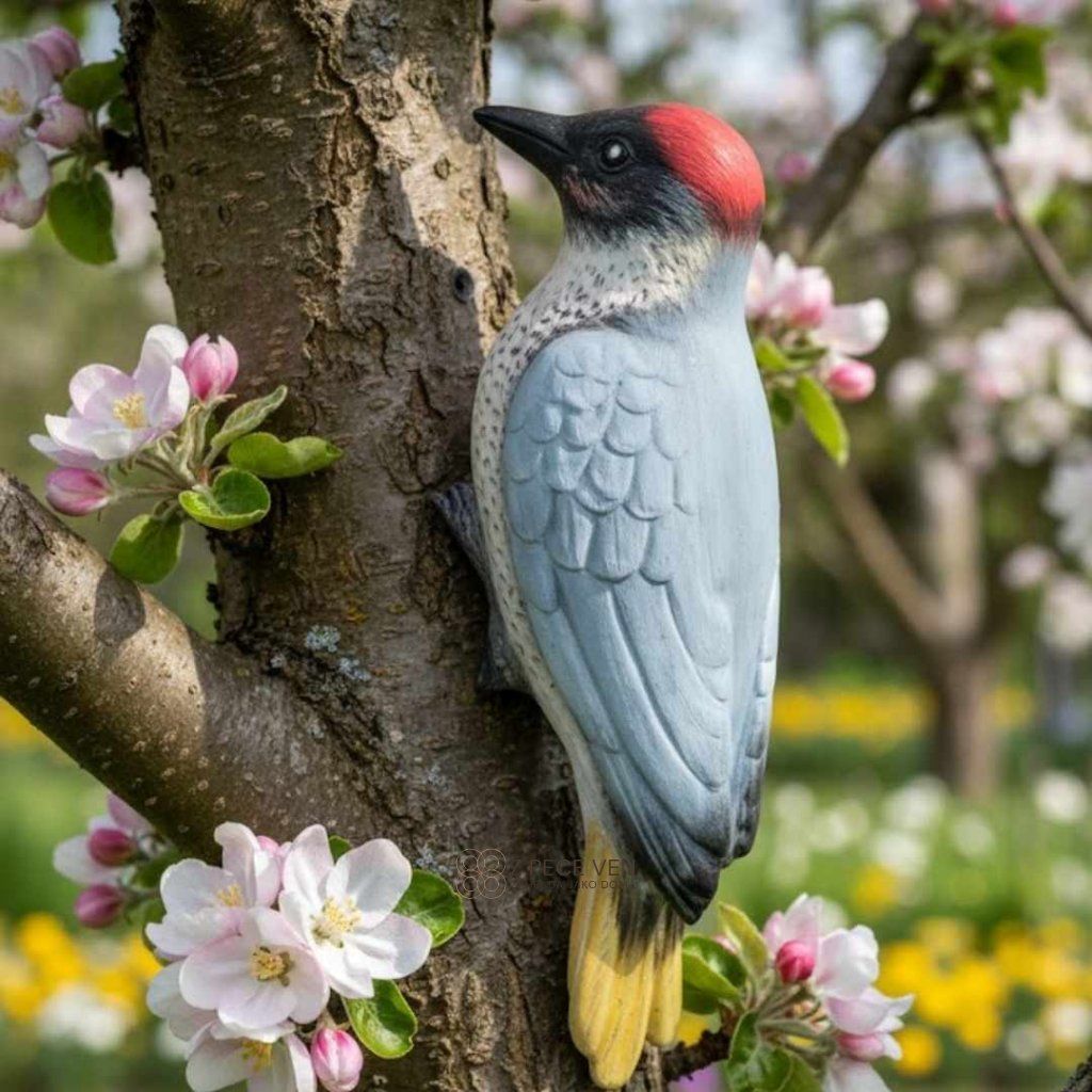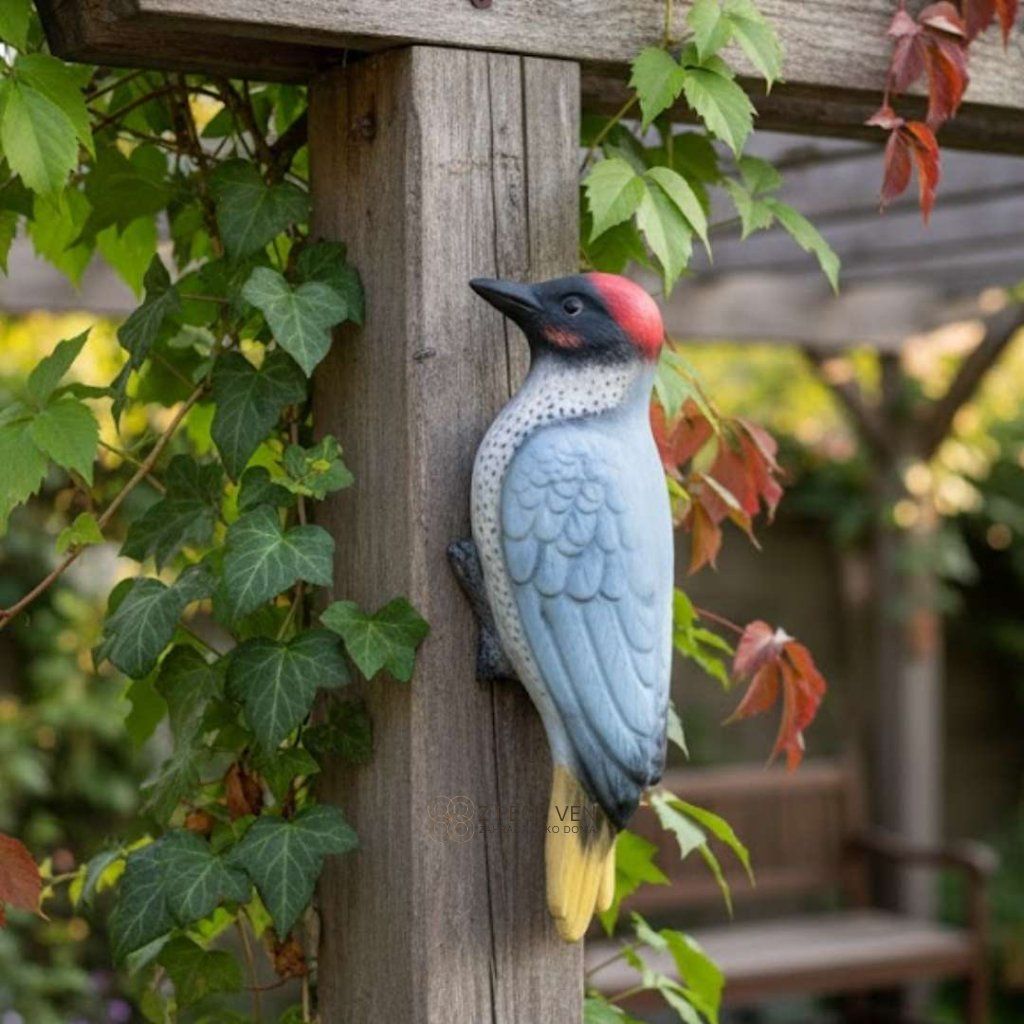 Keramická žluna na zavěšení působí na kmeni stromu nebo pergole přirozeně, jako by tam právě přiletěla.
