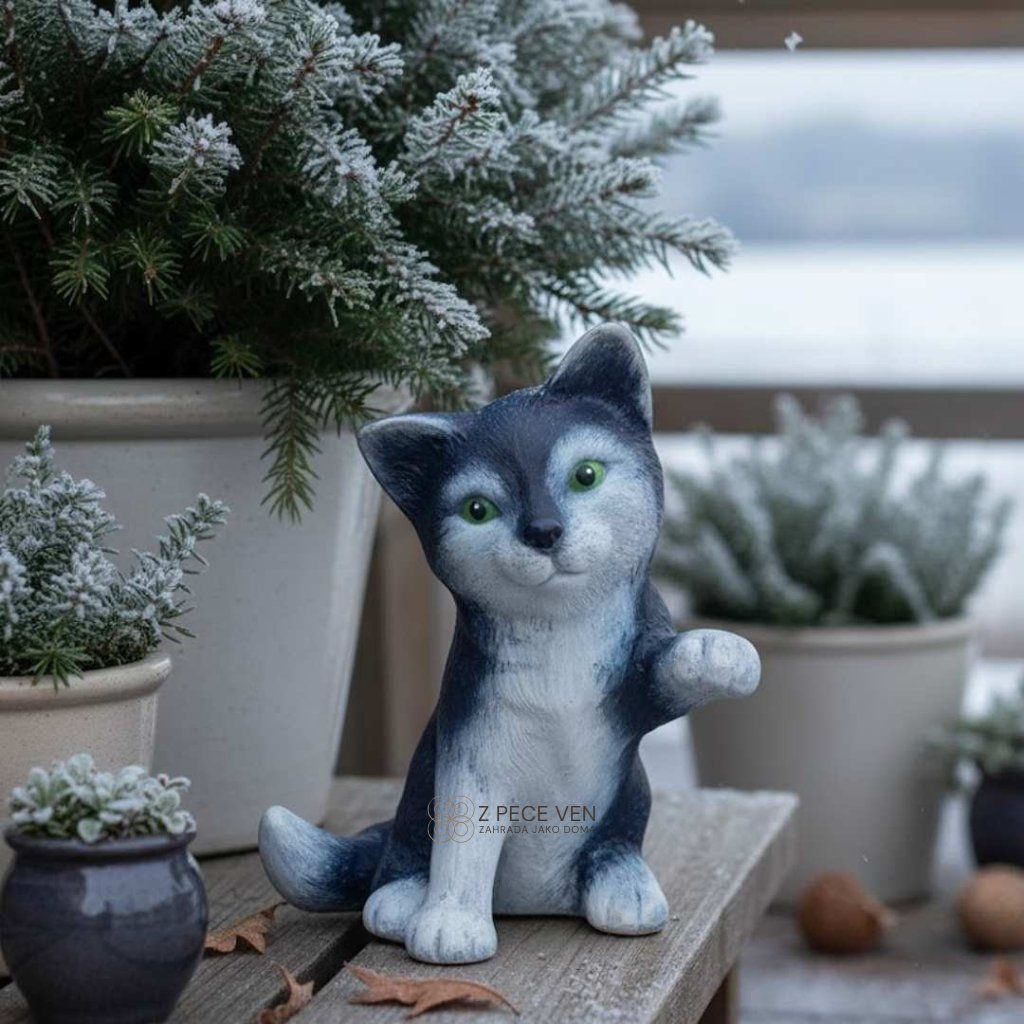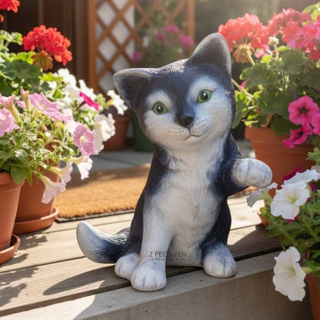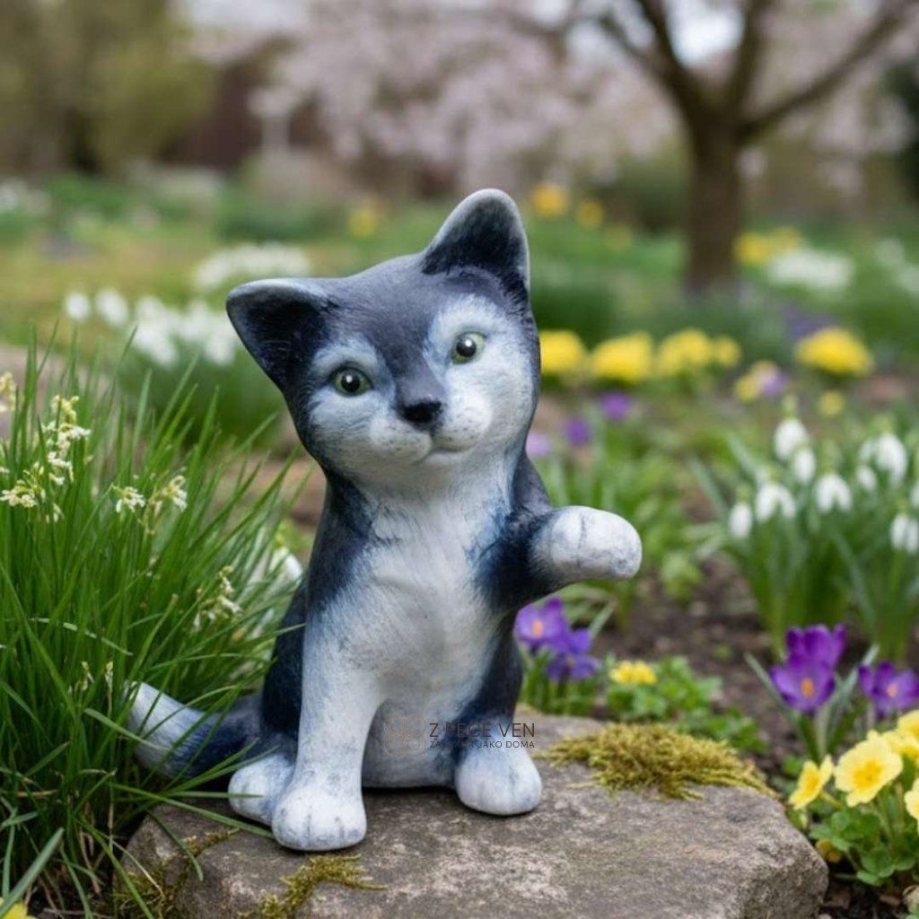Kotě Čertík je plně mrazuodolný materiál a stálobarevný, takže snáší déšť, slunce i nízké teploty bez potřeby složité údržby. Detaily srsti jsou zafixovány výpalem a odolávají UV záření.