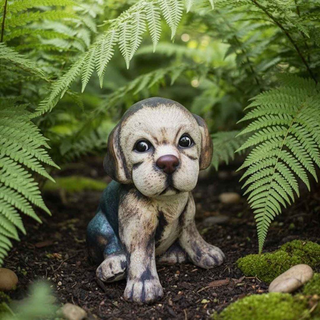 Keramické štěně Puntík působí v zahradě i na terase přirozeně a vytváří milý, hravý detail.
