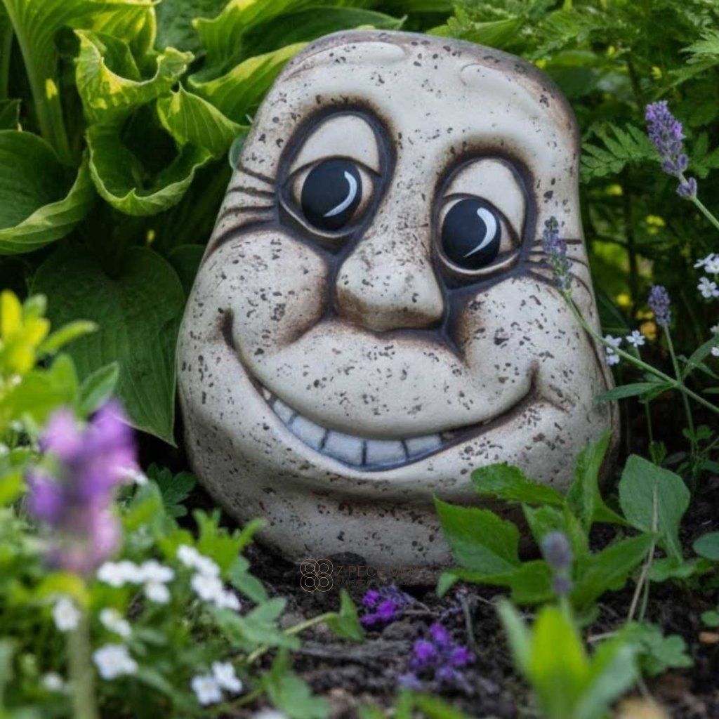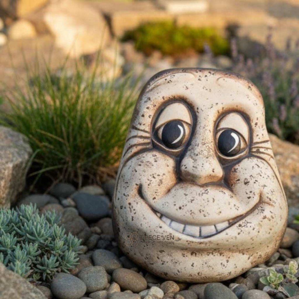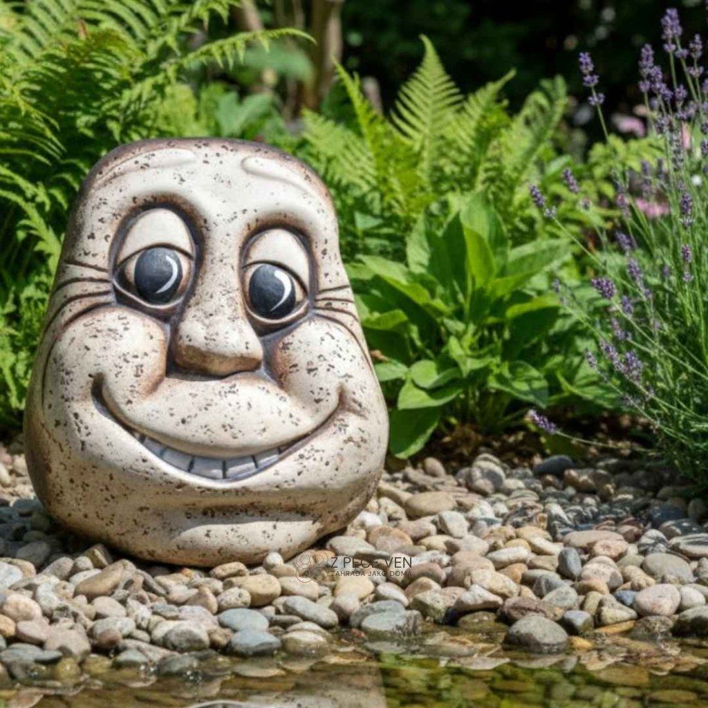 Keramický kámen Brambora s výrazem, který nepřehlédnete, přidá zahradě nadhled a trochu drzého humoru.