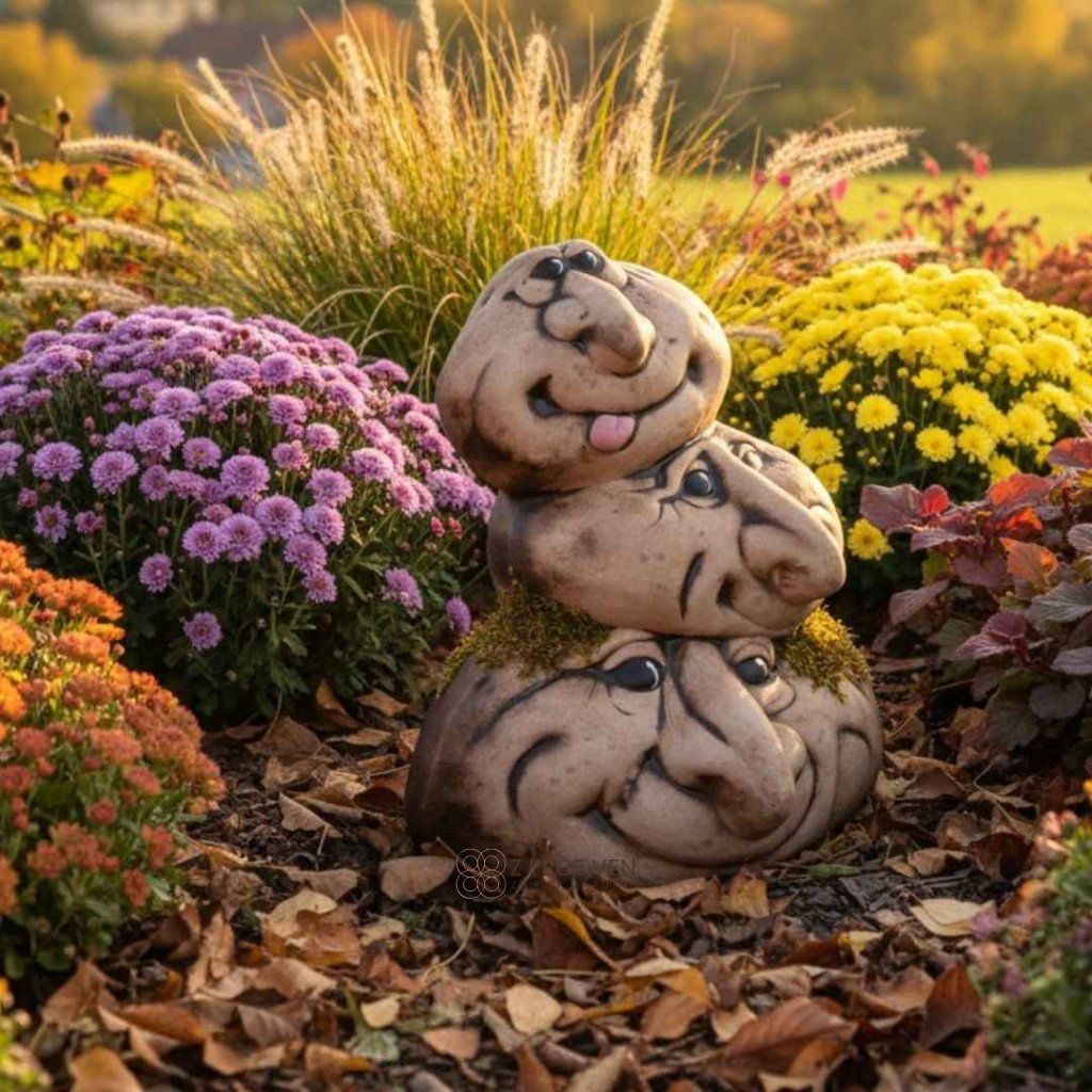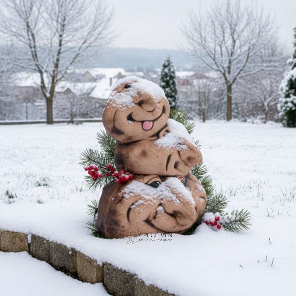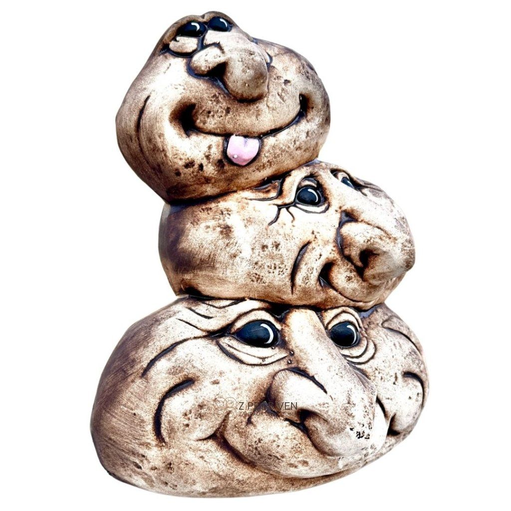 Kamenní chechtalové jsou navrženi jako stabilní dekorace, která díky své výšce 28 cm nezapadne ani v hustší výsadbě. Jejich nepravidelný tvar a zemité tóny patiny působí přirozeně, zatímco humorný podtón z nich dělá skvělý konverzační kousek pro každou návštěvu.