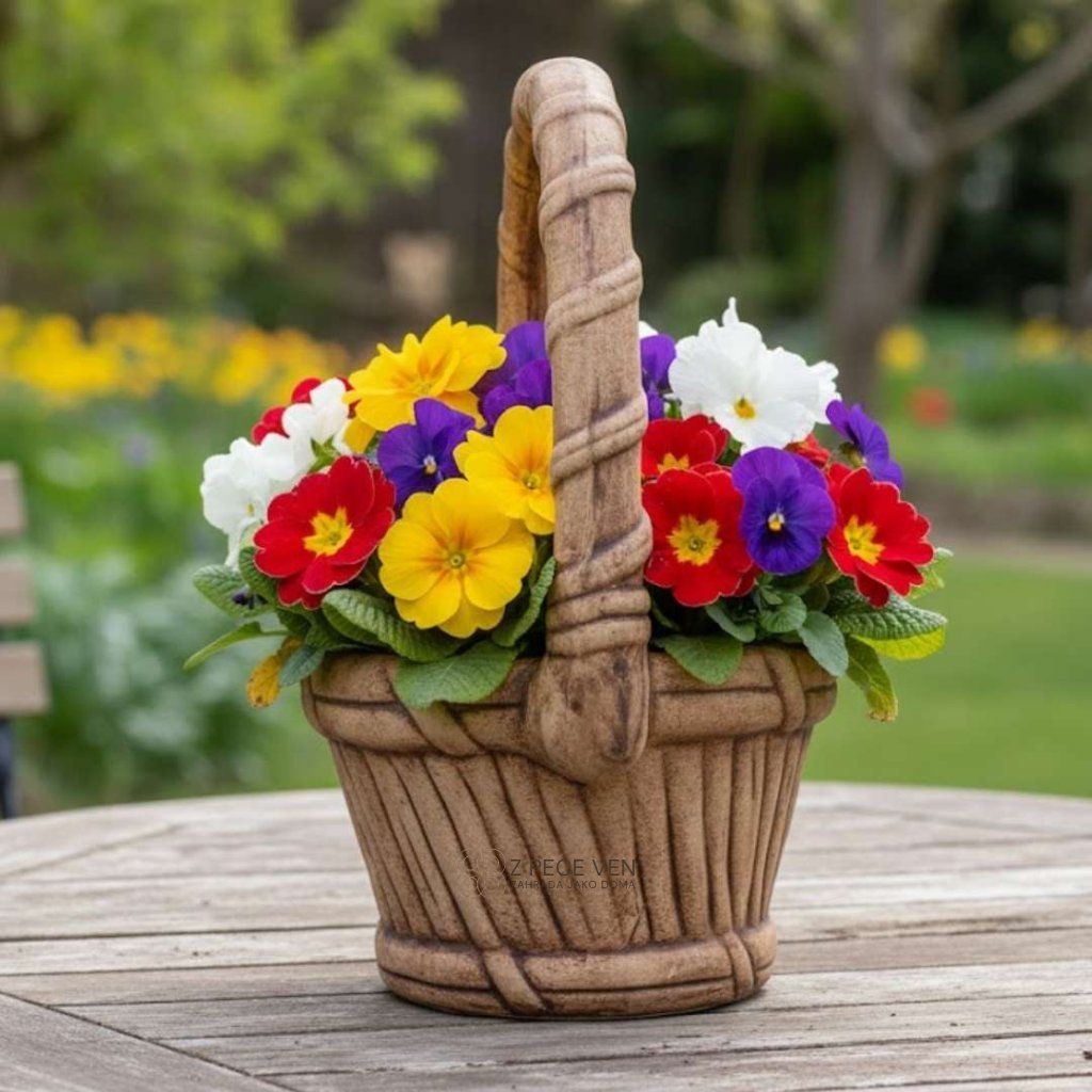 Vysokoteplotní výpal dodává košíku mimořádnou pevnost. Materiál snáší venkovní vlivy, déšť i přímé slunce, aniž by barvy ztrácely svou sytost díky ochraně proti UV záření.