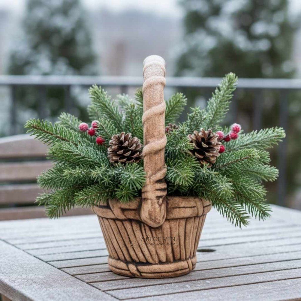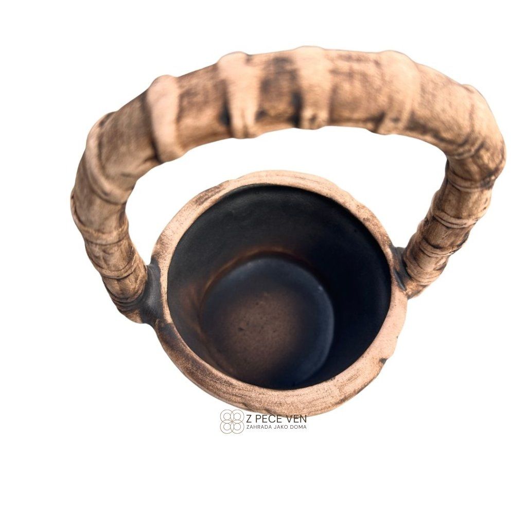 Keramický košík s uchem – rustikální šarm pro vaši výzdobu