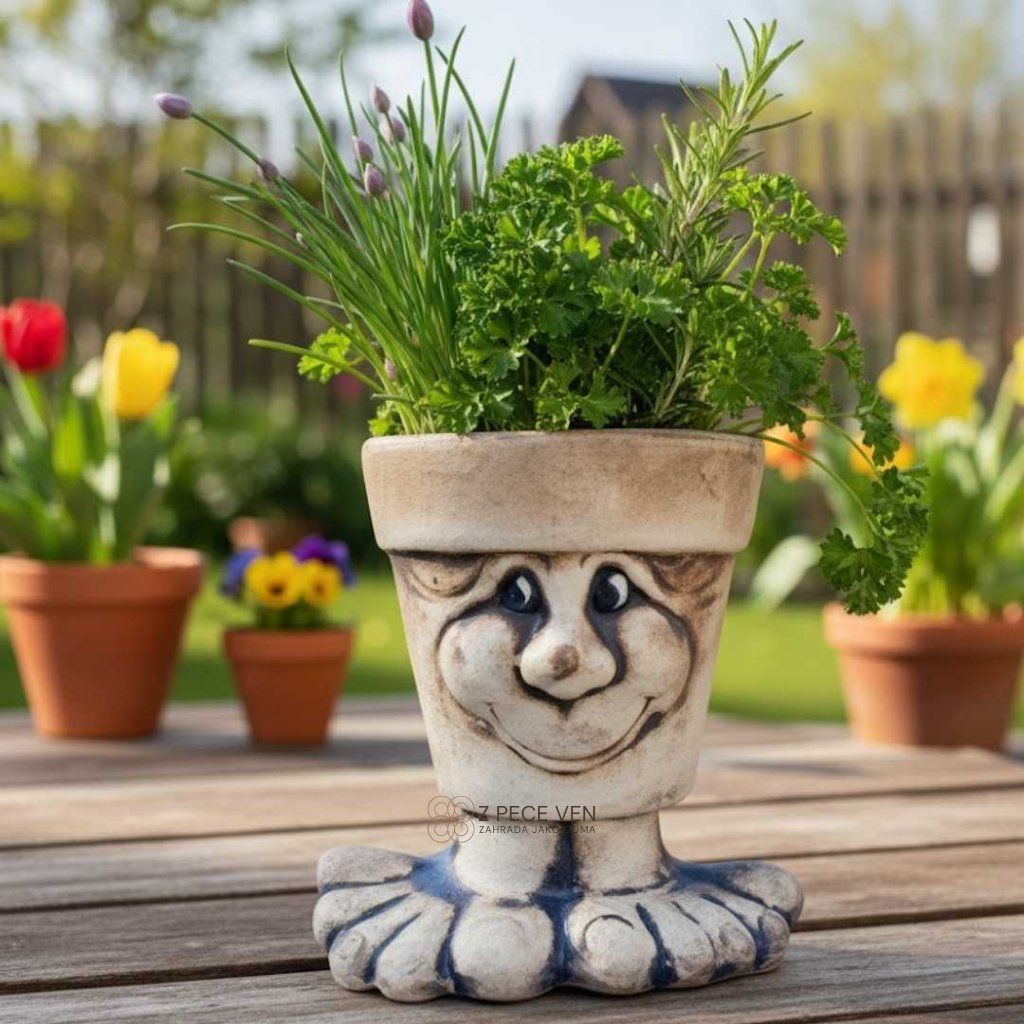 Keramický květináč Úsměv je drobná dekorace, která okamžitě zvedne náladu každému, kdo se na ni podívá. Díky svým nožičkám a optimistickému výrazu působí hravě a snadno oživí jakýkoliv prostor. Poctivá ruční výroba v české dílně zaručuje, že každý kus je originál s vysokou odolností, který skvěle poslouží jako dekorativní obal na rostliny i jako samostatný designový prvek.