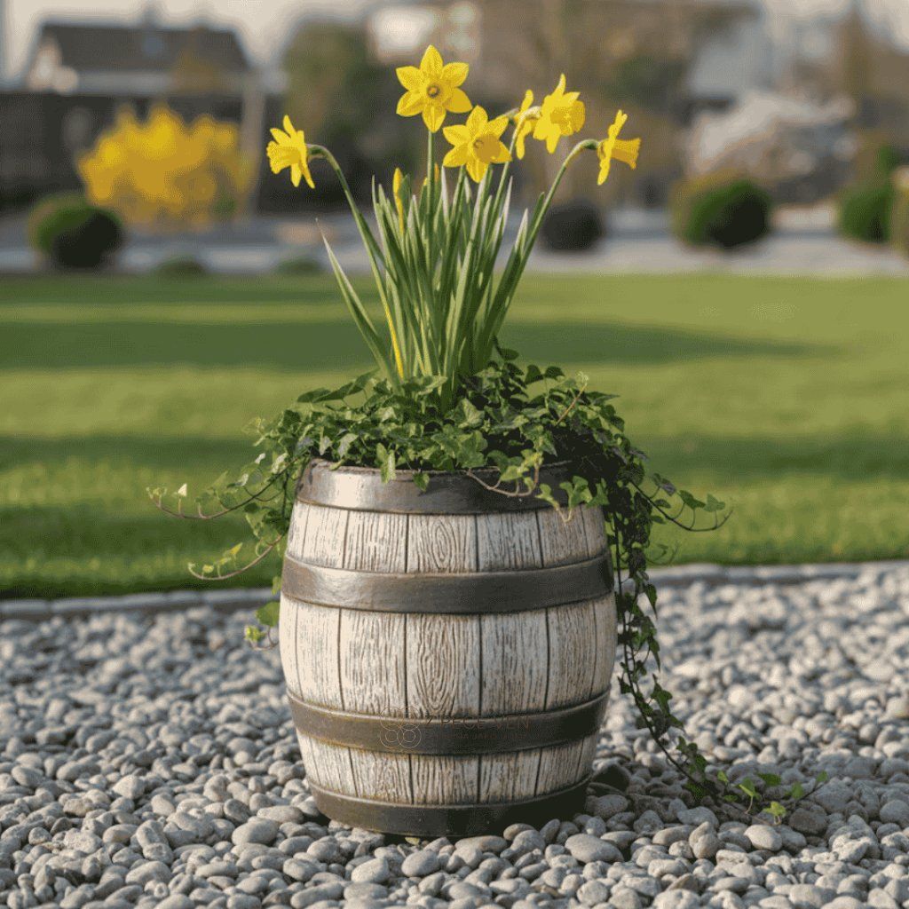 Keramický květináč v designu sudu přirozeně doplní květináče na zahradu a větší dekorativní prvky. Díky svému tvaru a výšce vytváří pevný základ pro výsadbu a zároveň působí jako výrazný solitér. Detailní provedení imitace dřeva s obručemi dodá vašemu venkovnímu prostoru nádech tradice a poctivého řemesla.