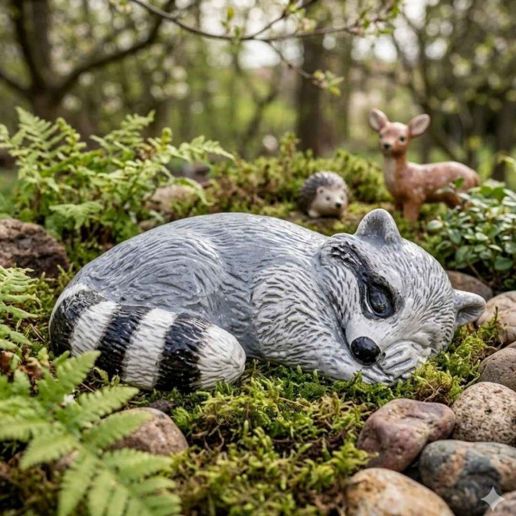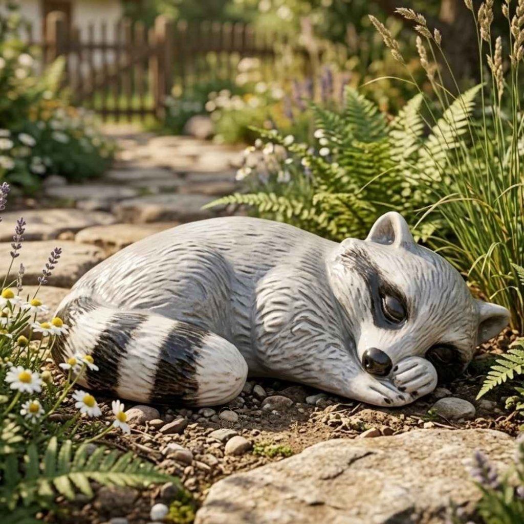 Keramický medvídek mýval Bruno – nechte ho spát, on vám zahradu pohlídá