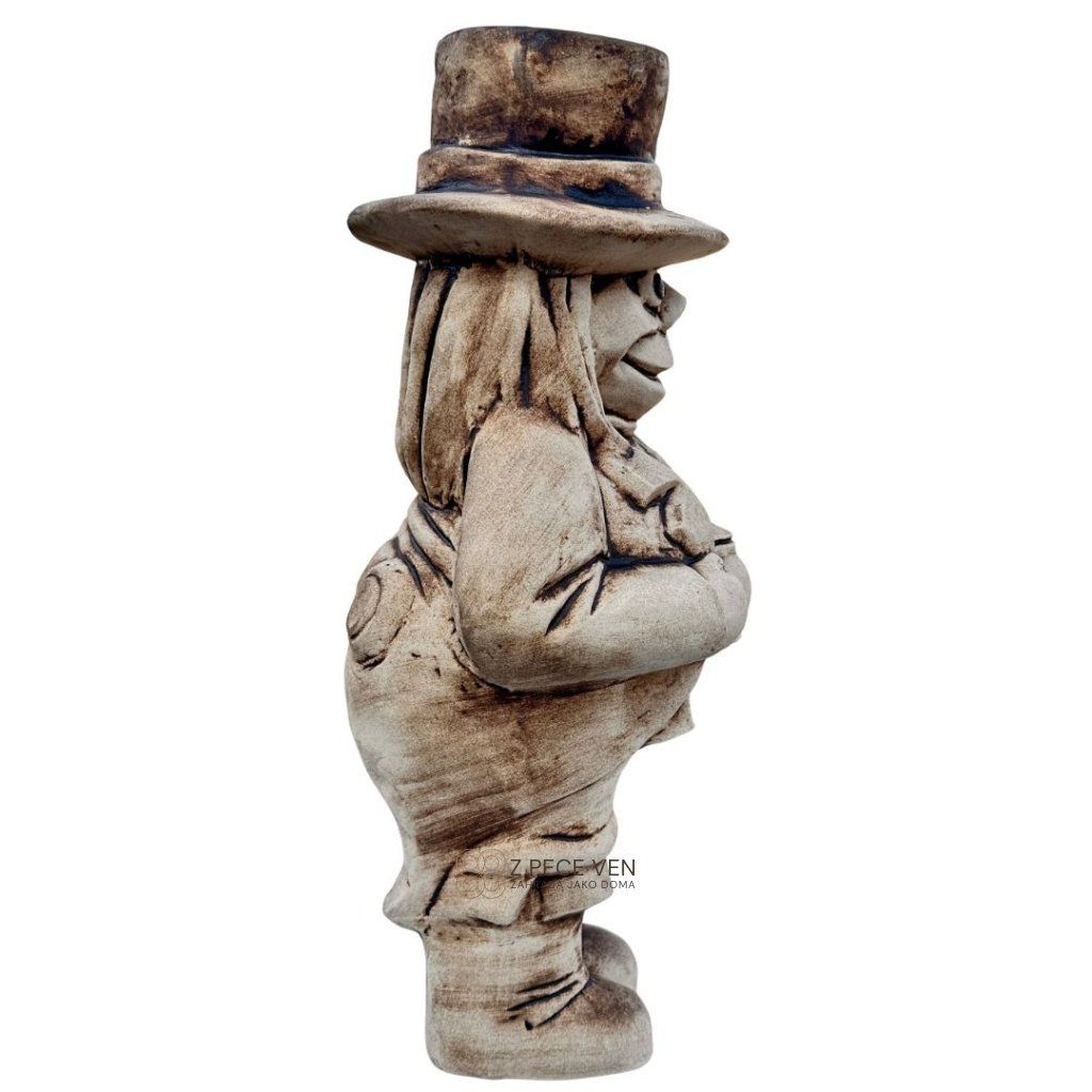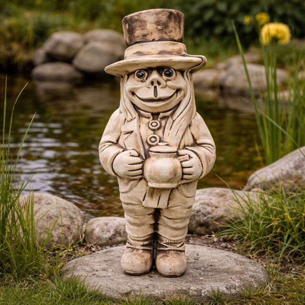 Keramický vodník k jezírku patří na hranu – tam dává smysl a vypadá nejlépe.